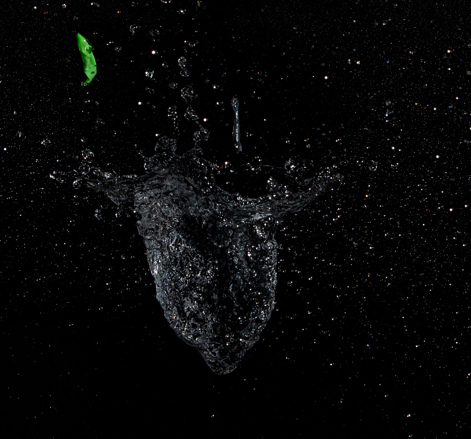 In fact the whole shoot was a series of experimentations. Setting up the sensitivity for the trigger, how to impale the balloons on the needle, how high to have the needle in relation to the IR beam etc.