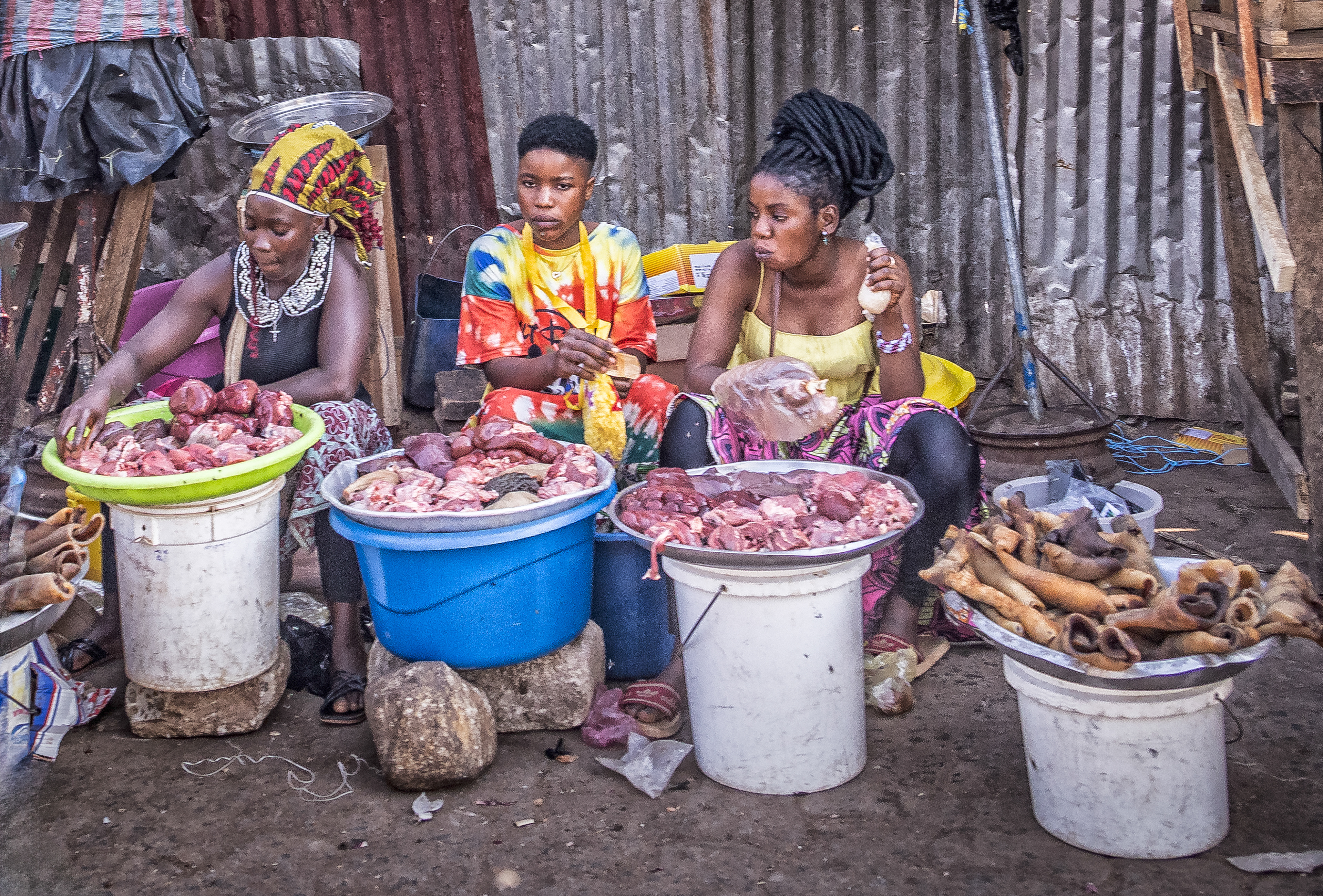 A Fulani woman shows off her lip tattoo in Fulabougou Village
