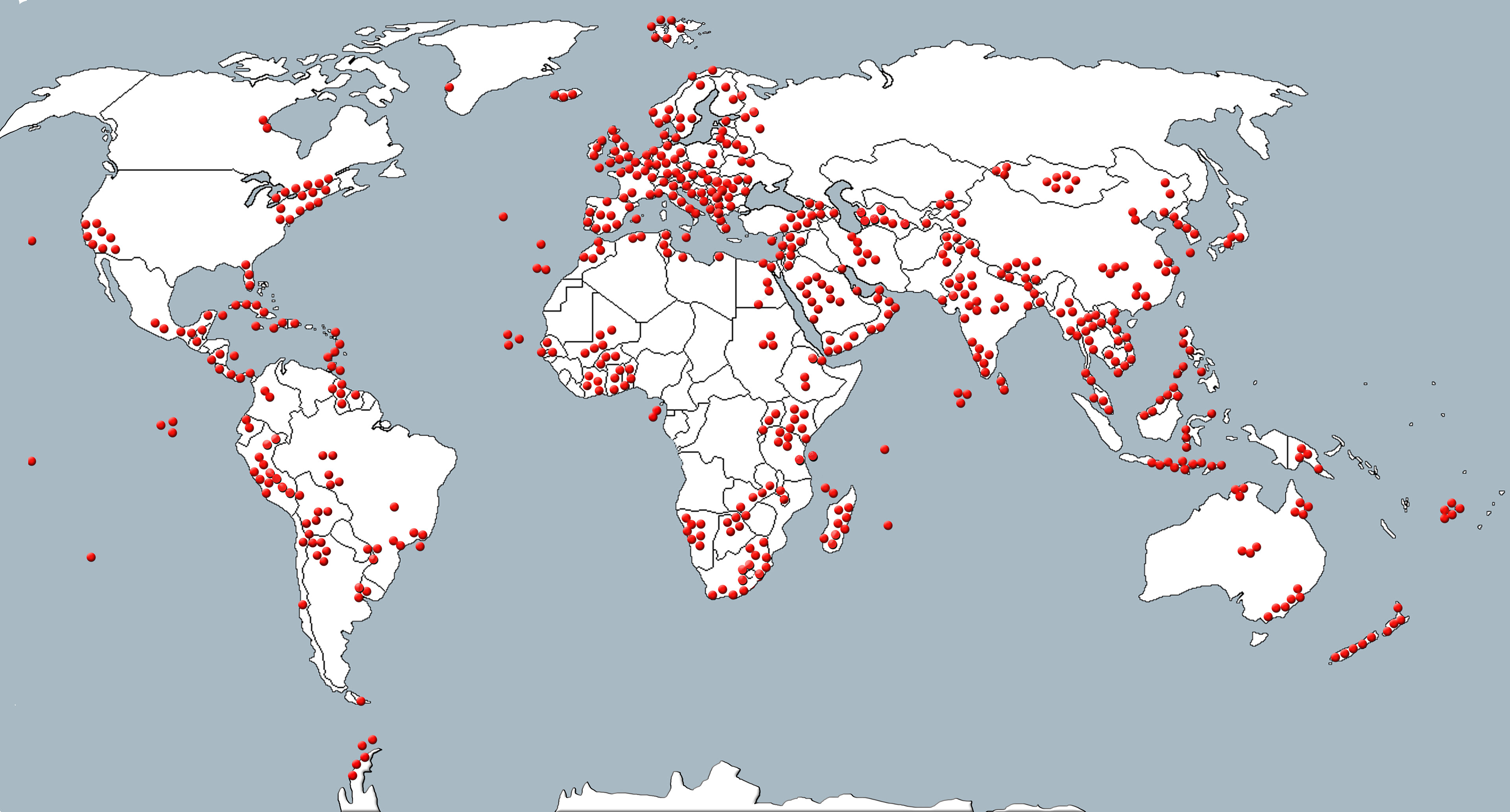 I'm a sucker for lists and statistics and have kept a record of every country I have visited, flight I have taken, airport I have travelled through, airline I have used, every hotel I have stayed in, boat trip I have taken, camel I have ridden, every animal and bird I have seen, and so much more. Above you can see a world map with little red pins showing the places I've been.