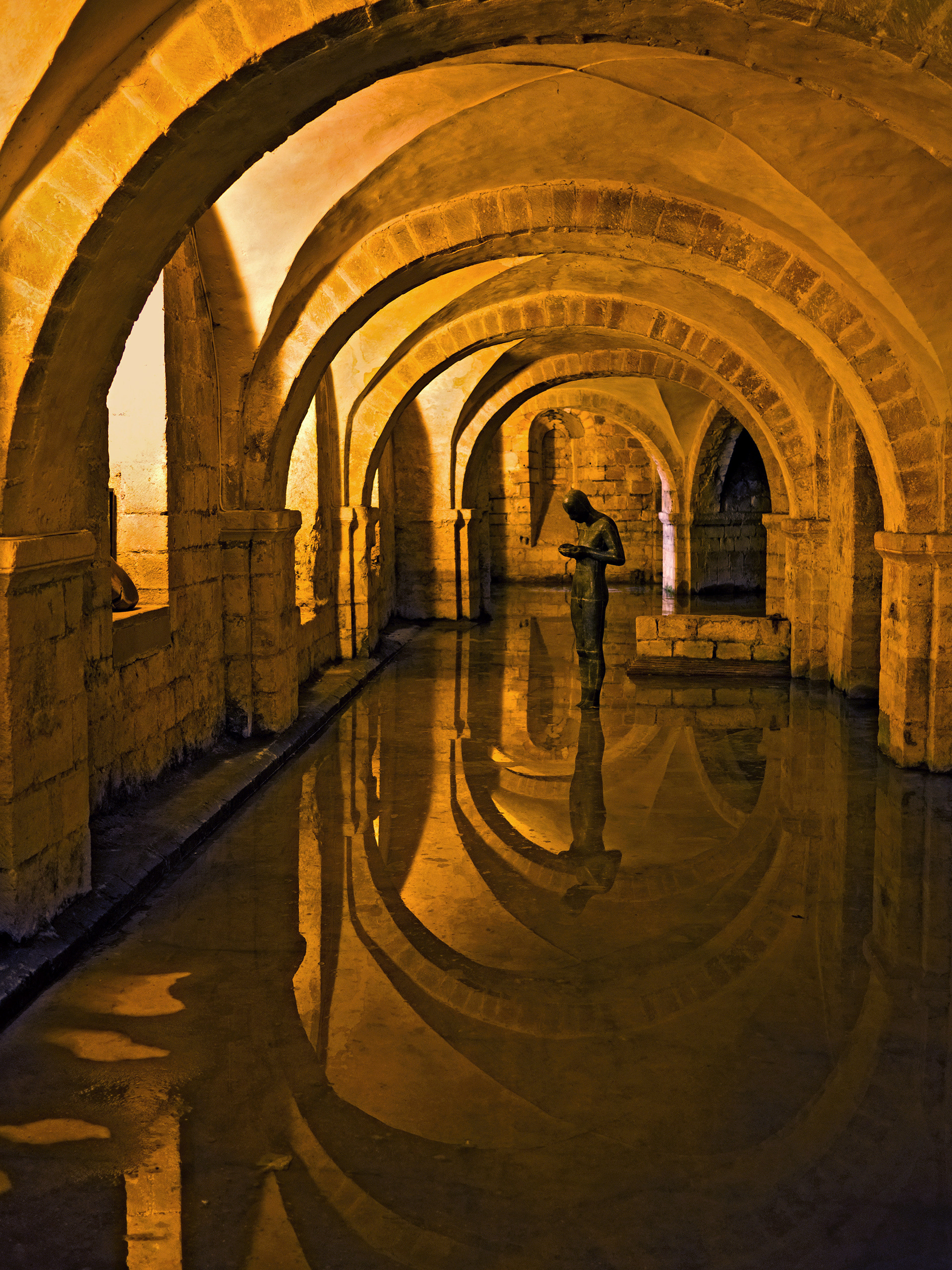 It is probably the most mysterious sculpture by Antony Gormley. As he often does, Gormley used his own body to cast the distinctive, moody sculpture. The lonely figure contemplates the water held in his palms and this gesture of the figure and its placement in the cathedral makes it transcendental, and spiritual, even though it is not directly related to religion.